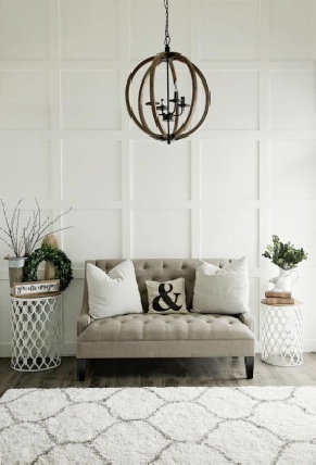 Pierwsze skrzypce grają w niej ręcznie malowana tapeta, która została zaprojektowana przez samą Kate Moss oraz białe elementy boazerii, które wspaniale podkreślają szlachetny i oryginalny motyw na tapecie.